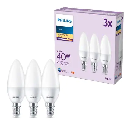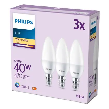 Confezione Multipack 3x Philips Bulbo LED E14 Candela Ghiaccio 5W 470lm - 827 Bianco Molto Caldo