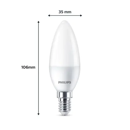 Risparmierai fino al 90% sui costi energetici e di mantenimento, grazie al basso consumo di energia assorbita dai 5W e ad una vita media utile di 15000 ore. A confronto: le lampade ad incandescenza tradizionali durano solamente 1000 ore. L’installazione delle lampadine LED è molto semplice: basta svitare le vecchia lampadina E14 a freddo ed avvitare la nuova lampada Philips Candela. Questo prodotto possiede la garanzia di qualità offerta da Philips e prezzi accessibili che partono da . Potrai utilizzare queste lampade usufruendo della Garanzia Totale Lampadadiretta.it di 2 anni.