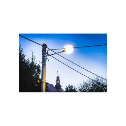 Se vuoi sostituire un vecchio apparecchio di illuminazione stradale scegli una nuova lampada LED. I LED hanno alta potenza luminosa e basso consumo energetico, come questo apparecchio che consuma solo 13 W. Ha un ciclo di vita di circa 100000 ore, che fa risparmiare anche sui costi di manutenzione e sostituzione.
