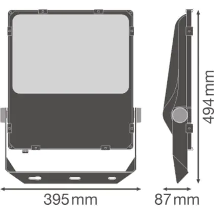 La copertura ottica in vetro temperato permette una distribuzione luminosa uniforme. In pochi secondi dall’accensione questo proiettore LED Ledvance raggiunge la luminosità massima di 24200 lm. Il flusso luminoso emesso è asimmetrico (45° x 140°).